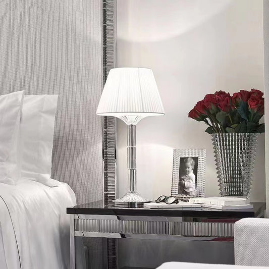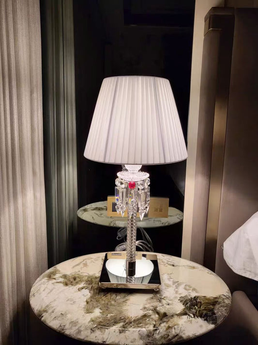 这款引人注目的LUMA水晶台灯采用光滑的抛光铬制底座,搭配精美细致的水晶灯柱,饰有精致的装饰。顶部配有大胆的黑色褶皱灯罩,形成惊艳的对比,为任何房间增添一丝优雅与现代感。水晶元素捕捉并反射光线,增强整体氛围,散发出奢华的光芒。非常适合为您的客厅、卧室或办公室增添一件亮眼的装饰品。
